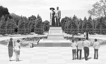 高7.6米、仿銅效果的孫中山、宋慶齡夫婦泥塑模型現(xiàn)身中山公園中區(qū)廣場(chǎng)