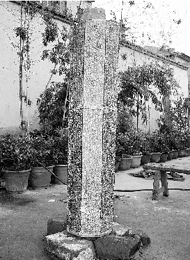 據(jù)新密市文物保護(hù)管理所所長(zhǎng)錢立森介紹,出土的石柱應(yīng)該是一個(gè)宋代佛教經(jīng)幢,應(yīng)有座有帽,但現(xiàn)場(chǎng)沒有發(fā)現(xiàn)。經(jīng)清洗測(cè)量,經(jīng)幢通高1.55米、直徑0.3米,八棱,每棱長(zhǎng)0.13米,均刻有文字,兩面風(fēng)化比較嚴(yán)重,其余字跡清晰。