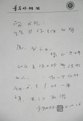 而對(duì)于季老的狀態(tài),10月份剛剛擔(dān)任季老助手的蔡德貴(山東大學(xué)教授,據(jù)近水居夜話博客上資料顯示季老10月初寫信要求其擔(dān)任助手)前天在接受采訪時(shí)表示,季先生現(xiàn)在身體非常好,思維很清楚,“在口述歷史的時(shí)候,一些時(shí)間點(diǎn)他記得很模糊,但是事情的情節(jié)記憶很清楚,這也很正常!