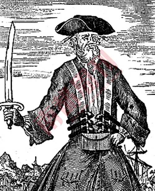 海盜歷史上最恐怖的人物代表之一黑胡子愛德華·蒂奇曾在北卡羅萊納州橫行一時。然而,1718年的突襲卻是黑胡子整個海盜生涯中最大膽的一次:他率領四艘海盜船封鎖了南卡羅來納州的查爾斯頓,將港內的船只洗劫一空,然后放了一把大火。在這次搶劫中,他綁架了不少人質和市政議會的議員以砍下這些人質的頭要挾,要求市政府以巨額的贖金交換人質。當海盜船隊離開查爾斯頓港時,黑胡子還勒索到150萬英鎊的贖金。