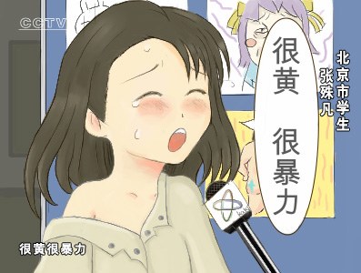 13歲女孩張殊凡在接受采訪時說:“上次我上網(wǎng)查資料,突然彈出一個網(wǎng)頁,很黃很暴力,我趕緊把它關(guān)了!边@句話掀起的“旋風(fēng)”恐怕是央視所始料未及的。同時,它也將很×很××這一句式演繹到了登峰造極的地步。