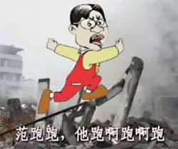 汶川大地震發(fā)生時(shí),四川省都江堰市光亞學(xué)校語(yǔ)文老師范美忠丟下學(xué)生一個(gè)人跑出了教室,因此被網(wǎng)友稱(chēng)為大地震中“最無(wú)恥教師”,取名“范跑跑”。