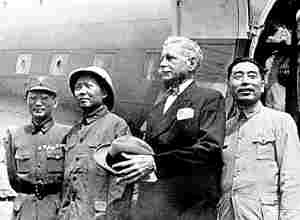 1945年8月28日,毛澤東赴重慶談判。臨行前,他換了換裝,穿上了葉劍英特地給他買的皮鞋和在北京給他訂做的一套藍灰色中山裝。江青到蘇聯(lián)醫(yī)生阿拉夫那里為毛澤東借來了一頂禮帽。周恩來上上下下打量毛澤東這身裝束,毛澤東說:“怎么,嫌我穿得太洋氣?”周恩來說:“不,我是看主席戴的帽子好像有點小。”說著,摘下自己頭頂上的盔式太陽帽遞給毛澤東:“主席,你戴上這頂試試,重慶的日光是很強烈的!泵珴蓶|接過太陽帽戴上,不大不小正合適。周圍的同志也說好。毛澤東風(fēng)趣地說:“恩來,我可奪人所好啰!”并問周恩來:“你戴什么呢?”周恩來說:“我還有,再說,重慶我比你熟,總可以搞到一頂,這頂就送給你吧!庇谑,毛澤東就戴上這頂盔式太陽帽登上飛機,去了重慶,并在重慶機場留下了一張頭戴盔式禮帽的歷史照片。