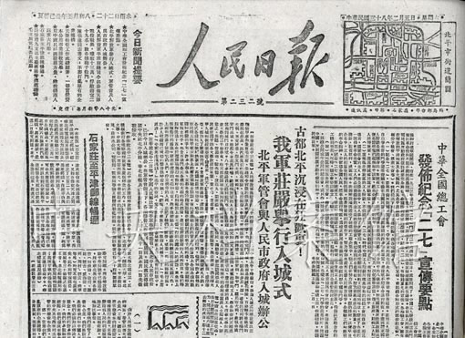 4. 1949年2月5日,《人民日報》關于北平軍管會與人民市政府入城辦公的報道