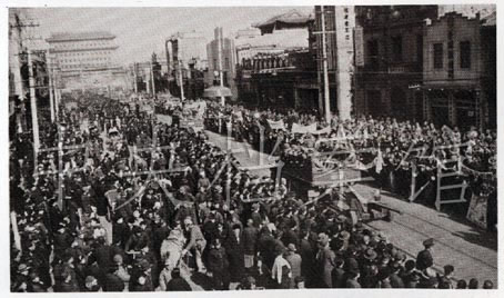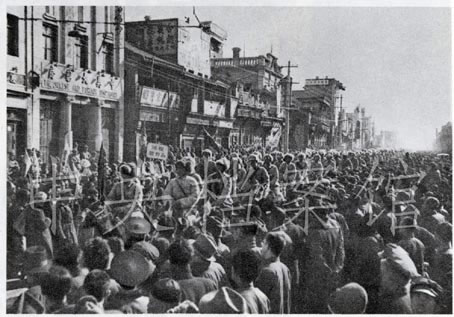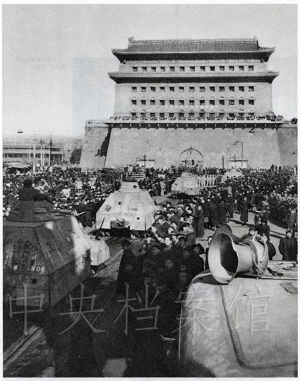 7.人民解放軍騎兵部隊通過北平前門大街的照片