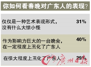 也有網友認為,如果這樣就認為影響廣東人形象,那么春晚小品中北方人、農村人的形象更受影響,他們被諷刺得更多。太敏感反而讓人覺得沒自信!