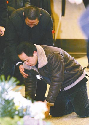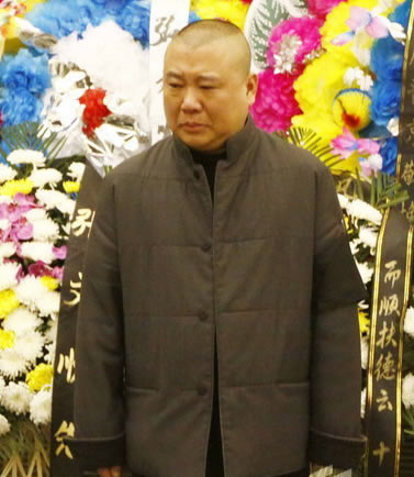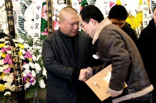 上午7點(diǎn)44分,德云社內(nèi)部的吊唁活動率先進(jìn)行。郭德綱、王惠夫婦,于謙、王海、李菁、何云偉、曹云金等骨干演員率百名演職人員向張文順先生的遺體默哀,禮畢后人人號啕大哭,痛不欲生。雙眼紅腫、哽咽不斷的郭德綱嘆息說,張先生走得太早了,自己失去了一位摯友,他愿老人能夠在天享福,歡笑來生。郭德綱承諾會照顧張夫人,并用心培養(yǎng)張文順的外孫寧云祥在德云社說好相聲。