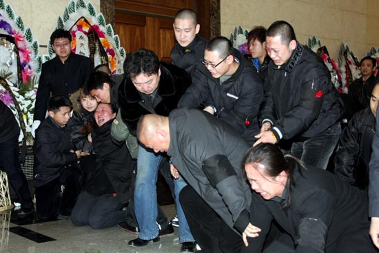 上午8點(diǎn),千余綱絲手捧白菊花、高舉張文順的紀(jì)念畫冊前來吊唁,長長的隊(duì)伍排出了百米開外。公眾追悼儀式開始,曲藝同仁李金斗、劉洪沂、謝天順、梁厚民第一列入場。張夫人激動地握住李金斗的手放聲大哭,李金斗連連安慰,說有困難他一定會幫忙。走出大廳,李金斗說:“張文順是我同班學(xué)長,大師哥為人豪爽,非常聰明。感謝德云社能照顧他走完一生,沒有德云社就沒有張文順的名望!