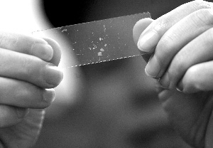 “別看這些木屑個(gè)頭很袖珍,必須用兩片玻璃上下壓著,才不會(huì)被吹走,但它們身上還藏污納垢。在做鑒定前,要先給它們徹底‘洗澡’。”潘彪笑著說(shuō),鑒定第一步就是把這些好不容易取回的樣本放在溫水或蒸餾水中,把它們身上的附著物清洗掉。