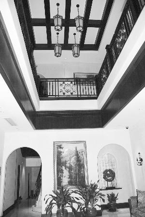 推開(kāi)足有五米寬鏤空鐵藝的玻璃大門(mén),記者走進(jìn)這幢神秘的建筑,只見(jiàn)大廳寬敞氣派,內(nèi)部家具擺設(shè)復(fù)古而豪華,墻上則是一些老的照片和油畫(huà)作品,燈飾也是流行于民國(guó)時(shí)期的西洋式樣。大廳一角的用途為接待客人,兩旁為居住區(qū),都是一間間單獨(dú)的客房。