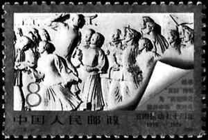 1969年的“五四”青年節(jié),我國(guó)發(fā)行“紀(jì)37”《紀(jì)念五四運(yùn)動(dòng)五十周年》紀(jì)念郵票一套兩枚,這套郵票的面值均為8分,由鄧錫清設(shè)計(jì)。郵票主圖分別為“發(fā)揚(yáng)‘五四’光榮傳統(tǒng)”和“為偉大的新長(zhǎng)征貢獻(xiàn)青春”,其中第一枚郵票的主圖實(shí)質(zhì)就是天安門(mén)廣場(chǎng)上人民英雄紀(jì)念碑中的“五四運(yùn)動(dòng)”浮雕。