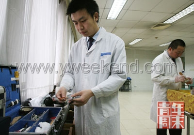 去年殯儀館招來(lái)一個(gè)漂亮的小姑娘,第一天培訓(xùn)結(jié)束后,老師傅問(wèn)她有沒(méi)有男朋友。小姑娘說(shuō)有。老師傅回頭沖著張洋喊,別惦記了,人家有。后來(lái),張洋鼓足勇氣追過(guò)一陣,但沒(méi)追上。坐在記者對(duì)面,他有點(diǎn)不想提“失敗的原因”。其實(shí),這個(gè)男孩長(zhǎng)得很精神,只是臉上常常流露出一種不符合年輕人的老氣和憂(yōu)郁。“可能我的性格問(wèn)題吧,我像一60年代的人,不活份,不新潮!睆堁笳f(shuō)不清自己是天生如此,還是這份工作造成的——至今,他都不習(xí)慣用Ipod,聽(tīng)音樂(lè)還用CD機(jī)。