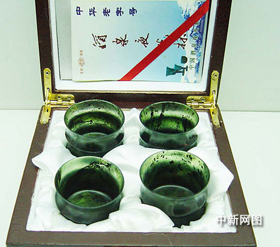 酒泉夜光杯,不僅是我國具有悠久歷史的傳統(tǒng)工藝品,也是一種名貴飲酒器皿。酒杯是用祁連山一帶的酒泉玉石巧磨細琢而成的。它質(zhì)地細膩,紋理天然光滑透明,杯壁薄如蛋殼。色澤有脆綠、墨綠、鵝黃、羊脂白等。當你把美酒置于杯中,放在月光下,杯中就會閃閃發(fā)亮。夜光杯具有耐高溫抗嚴寒的優(yōu)點。斟燙酒,不爆不裂;歷寒冬,不凍不炸。盛酒后,色不變,味更濃,被稱為白玉精。據(jù)《十洲記》記載:周穆王時,西域向朝廷進獻夜光常滿杯。杯是白玉之精,記述了西域夜光杯的特色。唐代詩人的“葡萄美酒夜光杯”和葉劍英同志“評泉品酒看光杯”的佳句,更使夜光杯盛譽遠揚。它現(xiàn)已遠銷歐、亞、美3大洲的許多國家和地區(qū),深受國際市場的歡迎。