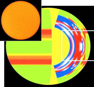 NSO科學(xué)家Frank Hill表示,這便是在太陽上發(fā)生的一切,只不過略有不同罷了。利用一種被稱為日震學(xué)的技術(shù),他和同事Rachel Howe從上世紀(jì)90年代中期開始對太陽射流進(jìn)行跟蹤研究。這種方法與地震學(xué)家用于探測和評估地震的方法類似,并且由于太陽射流發(fā)生在太陽表面下幾千公里,因此日震學(xué)的應(yīng)用便顯得尤為重要。Hill和Howe發(fā)現(xiàn),與正常情況所需的11年相比,形成于1996年的太陽射流運(yùn)動得更為緩慢——用了13年才到達(dá)了臨界的南北緯22度。