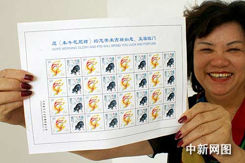 中新江蘇網(wǎng)鹽城8月17日電 (于從文 徐德鈺 李根) 上海吳女士16日來到江蘇鹽城,展示了以罕見的徐悲鴻畫豬圖為主題的個(gè)性化郵票設(shè)計(jì)效果圖。該連體郵票畫面中,一只火紅的剪紙鳳凰和一只黝黑的國(guó)畫豬相映成趣,給人以獨(dú)特的視覺感受。目前,這套郵票已經(jīng)交付印刷,將在本月底發(fā)行。