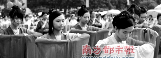 “每走一步、袖子怎么擺動(dòng),都有講究!睆V東省民俗文化研究會(huì)副秘書長(zhǎng)、珠村民俗專家潘劍明是儀式主持,他透露,此次演出專門請(qǐng)來(lái)“漢禮”專家按歷史傳統(tǒng)還原場(chǎng)面。