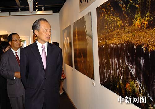中新網(wǎng)東京9月2日電 (記者 朱沿華) 為慶祝中華人民共和國建國六十周年,旅日華人攝影家馮學(xué)敏個(gè)人作品展《中國四川•熊貓的故鄉(xiāng)》二日在位于東京的尼康沙龍舉辦。中國駐日大使崔天凱、日本參院議長江田五月等中日各界人士近百人當(dāng)場祝賀影展的開幕。