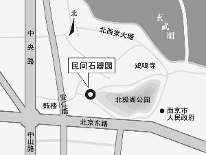 出了玄武湖公園,在解放門右側(cè)有一條小路,曲徑通幽一直向西延伸。順著山勢下行,過了雞鳴寺的后門不遠處,路的右旁冒出一方石碑,上面刻著“民間石器園”五個字。推開銹跡斑斑的鐵門,最先映入眼中的,就是兩口古老的石井。