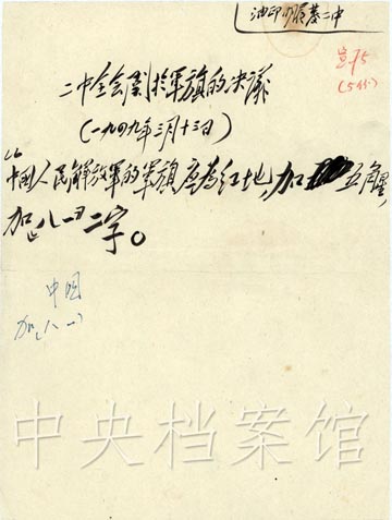 1948年2月,中共中央發(fā)出通知,向各中央局、中央分局、各軍區(qū)、各野戰(zhàn)軍前委征求中國人民解放軍軍旗、軍徽的具體意見。