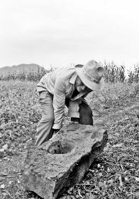 “3年前,我家姑娘種地時(shí),從里面挖出一塊大石頭,現(xiàn)在還放在田邊!弊箝L存所說的這塊石頭長約60厘米,寬約40厘米,石頭中間有一個(gè)碗口大的坑,坑壁光滑,深約30厘米。