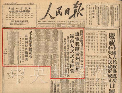 1948年8月,西北軍政長官公署副長官陶峙岳兼任新疆警備總司令,1949年1月,包爾漢擔(dān)任新疆省政府主席兼保安司令。1949年4月,與中國共產(chǎn)黨有聯(lián)系的國民黨和談代表屈武回新疆,策劃和平解放。中共中央派鄧力群到新疆進行爭取和平解放的工作。9月25日,陶峙岳向毛澤東、朱德、彭德懷及中國人民革命軍事委員會發(fā)出起義通電:自即日起,與廣州政府?dāng)嘟^關(guān)系,竭誠接受毛澤東之八項和平聲明與國內(nèi)和平協(xié)定,全軍駐守原防,維持地方秩序,聽候人民革命軍事委員會及人民解放軍總部之命令。26日,包爾漢也發(fā)出起義通電:將省政府改組成新疆省臨時人民政府,暫時維持全省政務(wù),聽候中央人民政府的命令。9月底,起義部隊改編為中國人民解放軍第二十二兵團,新疆和平解放。