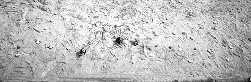 為什么叫恐龍澗?記者決定一探究竟。在諸城龍都街道庫溝村北的一個小嶺下,一條被塑料布和草氈覆蓋的隆起帶橫亙在黃土丘之間。考古人員向記者介紹說,這是其中一處大型恐龍群的“墓地”,因化石眾多,所以得名“恐龍澗”。