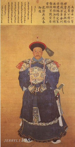 關(guān)于紫光閣功臣像,據(jù)北京故宮博物院宮廷繪畫家聶崇正先生考證,為“平定西域準(zhǔn)回部”前后功臣各五十(前五十幅為乾隆御題。)“平定大小金川”前后功臣各五十。前五十幅為乾隆御題。“平定臺灣”五十功臣!捌蕉ɡ獱柨Α惫Τ既。總計二百八十幅。目前知道存世僅二十幅。除少數(shù)幾幅私人收藏外,大多數(shù)為世界各地公私博物館收藏。現(xiàn)在知道的是: