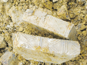 走下山坡看見山腰中間留下了大量挖土機(jī)機(jī)爪的痕跡,抓痕里不時(shí)夾雜著一些墓磚。繞過中間的池塘,我們來到對岸的山坡。同樣,這里也是一處墓群,地面上墓磚被丟棄一地,考古專家告訴記者,從土層暴露出來的墓磚看,也是三座大墓,“中間一座肯定是近日被挖開的,這些堆土是新填的,盜墓賊已經(jīng)將古墓洗劫一空,然后做了偽裝,把挖開的古墓又填埋了”。據(jù)他介紹,這三座古墓全都是東西向葬式,墓形都很大,從墓形規(guī)模可以斷定,這是一處六朝早期的貴族墓群。