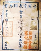 據(jù)文獻資料記載,辛亥首義同志會是辛亥革命紀念組織中最有影響的組織。抗戰(zhàn)勝利后,湖北籍的首義人員“覽締造河山之艱難”,擔(dān)憂“辛亥史跡,若不及早探詢,據(jù)事實錄,轉(zhuǎn)瞬人事代謝,酋軒何從采輯?”遂在1946年10月10日成立以居正為理事長的辛亥首義同志會。首義同志會創(chuàng)辦了首義學(xué)校,招收首義人員遺屬就學(xué)。成立辦事處,印制辛亥首義同志會會員名冊,表列姓名、籍貫、住址等名目,并收集首義歷史資料。擁有“兩證”的會員除了可證明參加過辛亥首義革命外,還可享受政府的系列優(yōu)撫政策。當(dāng)時登記會員有1644名。目前,根據(jù)掌握的名冊,參加革命的“首義老人”已全部辭世。