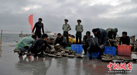 筆者采訪了在“南天順”打撈船上指揮安全保衛(wèi)的汕頭公安邊防支隊(duì)張言政委。張言表示,盡管官兵的守衛(wèi)工作非常辛苦,也有很多的困難,但是汕頭邊防官兵的這種付出是值得的,也是一件非常有意義的事。因?yàn)椋澳习蘑裉枴奔捌涑休d的大量古代文物,是一個時代文化的印記,是國家不可再生的寶貴資源。(完)