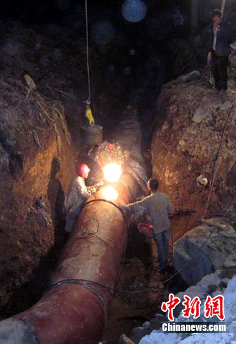 2日18時許,記者來到施工現(xiàn)場,此時燈火通明,上百名工人正在緊張地作業(yè)。據(jù)一名工人介紹,他們現(xiàn)在分成兩組進行搶修,每班工作都在12小時左右,基本上吃住都是在施工現(xiàn)場。