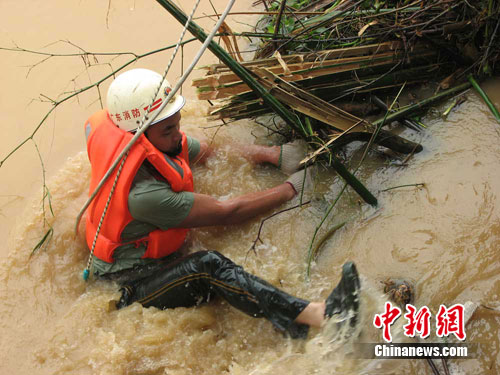 廣東陽(yáng)江雙捷攔河大壩被堵 消防隊(duì)奮力疏通(圖)
