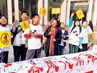 “春風(fēng)化雨,潤物如‘蘇’”。昨天上午在北京大學(xué)百年講堂前,十幾名學(xué)生手舉“蘇”字黃旗齊呼:“歡迎支持蘇彥捷老師……”有12年歷史的北大“十佳教師”評選昨日開始。由于三角地的拆除,因此這是北大歷史上首次將“尊師墻”移至百年講堂前,而各院系也首次被集中在一起為候選人拉票吶喊。一時間,各家吹拉彈唱,“有一種‘快男超女’現(xiàn)場拉票時的感覺。”許多北大學(xué)生表示。