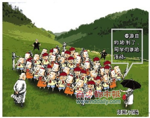 “每年都是去那幾個地方,買了門票進(jìn)公園就說要坐下講個故事唱首歌什么的,小孩子早就厭倦了!奔议L孫先生告訴記者,他兒子在一、二年級的時候特別喜歡去春游,每次回來都會說個不停,老師布置寫的日記,他總能自己寫上那么幾句話。“可自從上了五年級以后,他卻提不起一點勁來,說那都是以前去過的地方。”