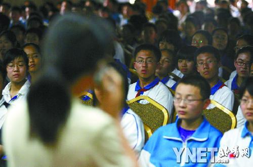 “天佑中華”主題教育活動(dòng)從下午4點(diǎn)30分開始,在簡(jiǎn)單的問候后北京十一學(xué)校教導(dǎo)處陳雪芬副主任向北川中學(xué)校長(zhǎng)劉亞春詢問,“是什么力量讓北川中學(xué)克服如此重重困難?”劉亞春校長(zhǎng)難掩悲痛地說:“其實(shí)作為教師,苦難中首先救助學(xué)生是教師本能的表現(xiàn)。對(duì)于那些罹難的師生來說,他們的生命不是消逝了而是永恒了,幸存者也變得更加堅(jiān)強(qiáng)。在今后的日子里,各方的關(guān)心和關(guān)注以及北川中學(xué)師生堅(jiān)強(qiáng)不屈的意志,都是我們戰(zhàn)勝艱難的最基本動(dòng)力!痹捯魟偮,北京十一學(xué)校近千名學(xué)生報(bào)以熱烈的掌聲。