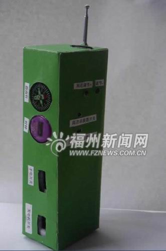 黃雅倩設(shè)計(jì)的遇險(xiǎn)應(yīng)急器,外型像一個(gè)改良過(guò)的“大哥大”,體積不大,但囊括了用于收音機(jī)和生命探測(cè)儀發(fā)出信號(hào)的電路板、充電電池、分鳴器、發(fā)光二極管、藥包等10多個(gè)小物件。