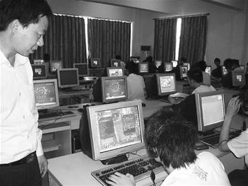 據(jù)管理電腦的一名女士介紹,這里180臺電腦全部能上網,除上課時間外,均對學生開放!袄蠋熞髮W生不要玩游戲、聊天,但大部分學生聽不進去,仍然玩各自喜愛的游戲。”據(jù)了解,在這里上網每小時收0.8元。