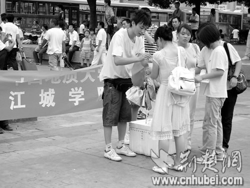 荊楚網(wǎng)消息 (楚天金報(bào))記者梅瑩 通訊員黃磊實(shí)習(xí)生曾浩報(bào)道:“6天時(shí)間我們已經(jīng)賺了將近4000塊錢了。”7月11日,本報(bào)第8版報(bào)道了地大江城學(xué)院的15名大學(xué)生,每人懷揣100元赴合肥進(jìn)行異地生存體驗(yàn)的消息。17日,隊(duì)長(zhǎng)楊柳打電話向記者報(bào)喜:目前15名隊(duì)員均已開(kāi)始“自力更生”。
