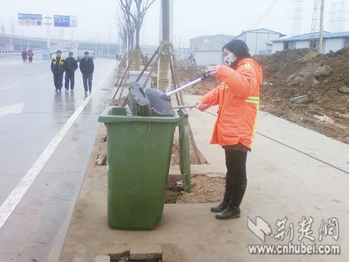 荊楚網(wǎng)消息 (楚天都市報(bào)) (記者聶麗娟 通訊員易先云 張凱揚(yáng))新年元旦放假的第二天,也是付莎莎到武漢火車站當(dāng)清潔工的第九天。清晨6點(diǎn)整,她穿著嶄新的橘紅色環(huán)衛(wèi)工作服,左手拎著鐵撮箕,右手拿著一尺多長(zhǎng)的鐵夾子,彎腰拾撿路面上的礦泉水瓶子、塑料袋、餐巾紙、煙頭等廢棄物。