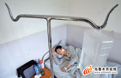 烏魯木齊在線訊(記者劉盼 梁坤 實習記者郭曉寧攝影報道) 5月13日中午,新疆法制報攝影記者郭詠在烏魯木齊市幸福路15小學附近采訪時,遭到一店主毆打,面部受傷。新疆記者協(xié)會副主席、新華社新疆分社社長樊英利前往醫(yī)院看望慰問受傷記者。