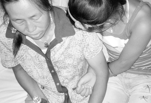 ●女童小月(化名)雙手緊緊抓住母親和姐姐的胳膊,腳步匆忙地閃進(jìn)記者的房間。隨著“咔嗒”的關(guān)門聲,她驚恐地抬起頭,死盯著門閂看了三五秒鐘,直到母親伏在耳邊說“門已經(jīng)上鎖了”,才肯坐在床沿,將身體埋在母親懷里。