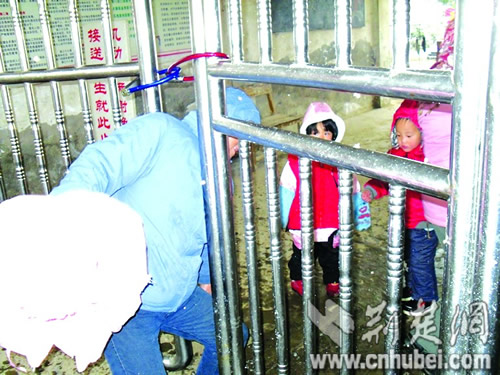 荊楚網(wǎng)消息 (楚天都市報(bào)) (特約記者楚雄 通訊員東風(fēng))昨日上午,天門多祥鎮(zhèn)中心小學(xué)校門被建筑商鎖上,致千余學(xué)生無(wú)法進(jìn)校。無(wú)奈之下,老師只得組織學(xué)生按順序從門縫中擠進(jìn)校園上課。等最后一名學(xué)生進(jìn)校時(shí),時(shí)間已過(guò)去一個(gè)多小時(shí)。