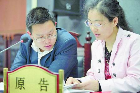原告夢(mèng)爽和其辯護(hù)律師在法庭上