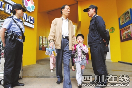 12日,青羊區(qū)教育局召集全區(qū)校長(zhǎng)召開(kāi)了安全緊急會(huì)議。區(qū)教育局局長(zhǎng)李澤亞要求,全區(qū)50多個(gè)學(xué)校、幼兒園一律從保安公司或物業(yè)管理公司聘請(qǐng)有保安證的保安;全區(qū)組織巡邏隊(duì),在上學(xué)、放學(xué)的高峰階段加強(qiáng)對(duì)學(xué)校及校門(mén)周邊的安全巡邏。