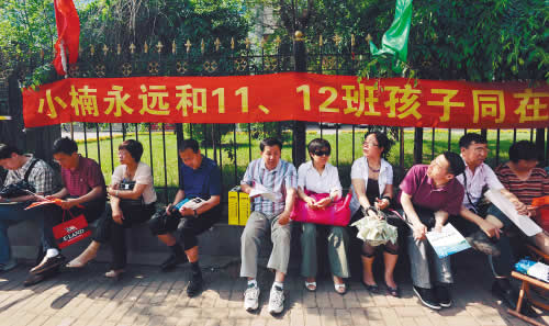 在43中學(xué)考點(diǎn)前,一條紅色標(biāo)語讓人關(guān)注!靶¢肋h(yuǎn)和11、12班的孩子同在!”。這位小楠是誰?一位家長告訴記者,小楠是考生的班主任,他們是120中學(xué)的。小楠老師班里同學(xué)被分到不同的兩個(gè)考點(diǎn),小楠老師去11中學(xué)考點(diǎn)陪考了,怕冷落了這邊考點(diǎn)的學(xué)生們,特意做了條幅!斑@位老師真好,人不到心到了。孩子看到條幅也會(huì)覺得踏實(shí)的。”一名學(xué)生家長這樣說。