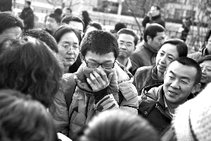 昨天的北大自主招生面試考場(chǎng)設(shè)在文史樓。上午11時(shí),第一批面試完的考生走出考場(chǎng)。尚在等待下午和今天面試的考生,隨即圍上來(lái)打聽考題的風(fēng)格。據(jù)考生介紹,同時(shí)進(jìn)行面試的有12個(gè)考場(chǎng),面試過程中是五人一組,三名評(píng)委。在面試中要先抽題,上午的題目共12道,考生有兩次抽題機(jī)會(huì),如果第一次抽到的題目不太有把握,還有第二次抽題的機(jī)會(huì),但第二次抽題之后就只能答這一題,不能再反悔。