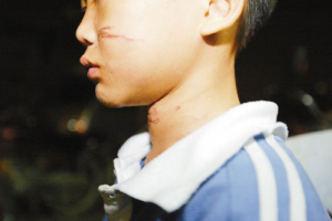 只要一碰淘淘的脖子,他就會(huì)往后縮。因?yàn)樗牟弊由嫌袔兹亢。淘淘說,是媽媽用繩子綁的,因?yàn)樗蓿瑡寢屔鷼,所以這樣箍他。