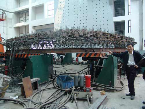 周錫元院士工作的北京工業(yè)大學抗震實踐室,他手指的是進行抗震實驗的08奧運會羽毛球場館模型