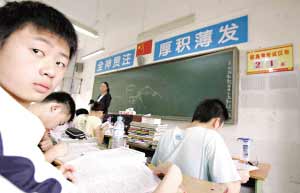 在高三(2)班的黑板邊,還掛著一個倒數(shù)牌,上面寫著離高考還有26天。這個日歷牌顯示的是5月12日的日期,從那天撤離教室,孩子們昨天回到教室后,沒有人愿意將這個日歷牌換掉,也許這個傷痛在每個人心里,都沒有人愿意去觸及。班主任紀曉燕說,她班里有一個安縣的學生,母親在那天就被廣告牌砸死了。父親打電話通知他時,他一天沒說話。到現(xiàn)在,這孩子也沒掉過一滴眼淚,每天就是在狠狠地溫習,也許這樣的方式能使他暫時麻醉,高考壓力使他暫時忘掉了悲傷。這是一種心理上的自我催眠,但是老師擔心,一旦考完試,巨大的悲傷就會瞬間擊垮他。