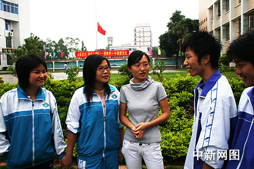 中新網(wǎng)韶關(guān)5月21日電 (馮昶 李凌 朱祖純)“老師,你是我們最敬愛的人”、“劉老師,挺!”……。面對自己朝夕相處的學(xué)生為她發(fā)來一條條鼓勵祝福短訊,廣東韶關(guān)南雄第一中學(xué)女教師劉子麗內(nèi)心無比的感激和欣慰。為了心愛的學(xué)生,為了自己的事業(yè),在四川汶川特大地震中痛失親人的她選擇了堅持、堅定和堅強,毅然堅守粵北教學(xué)崗位。